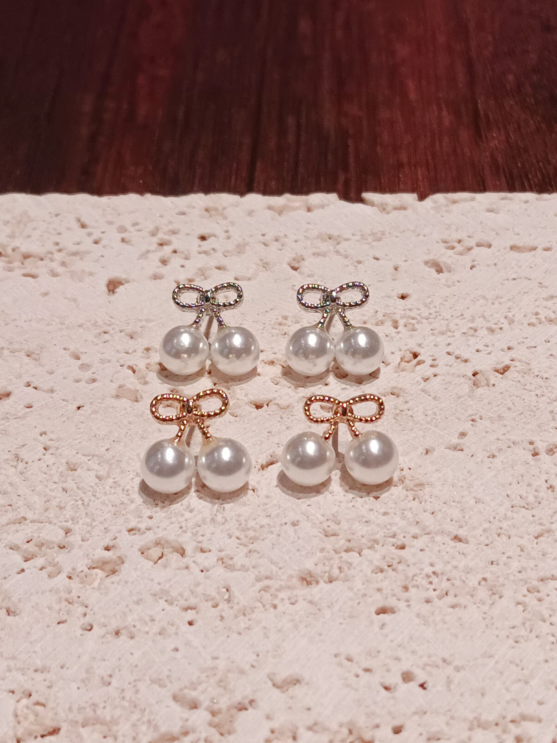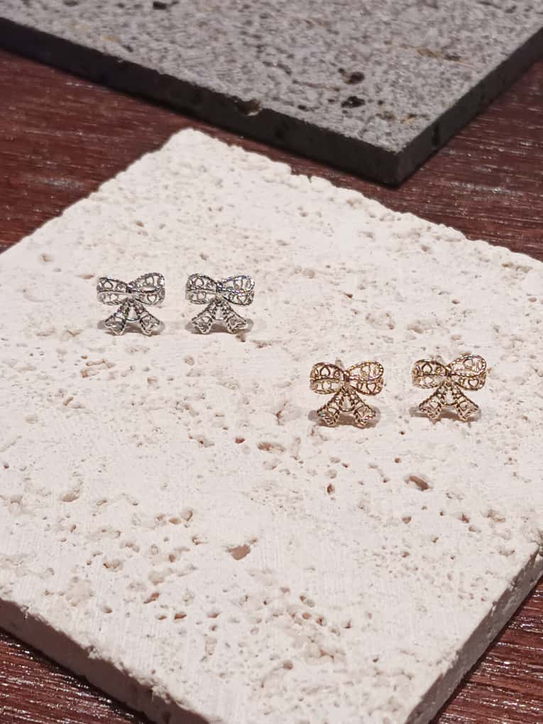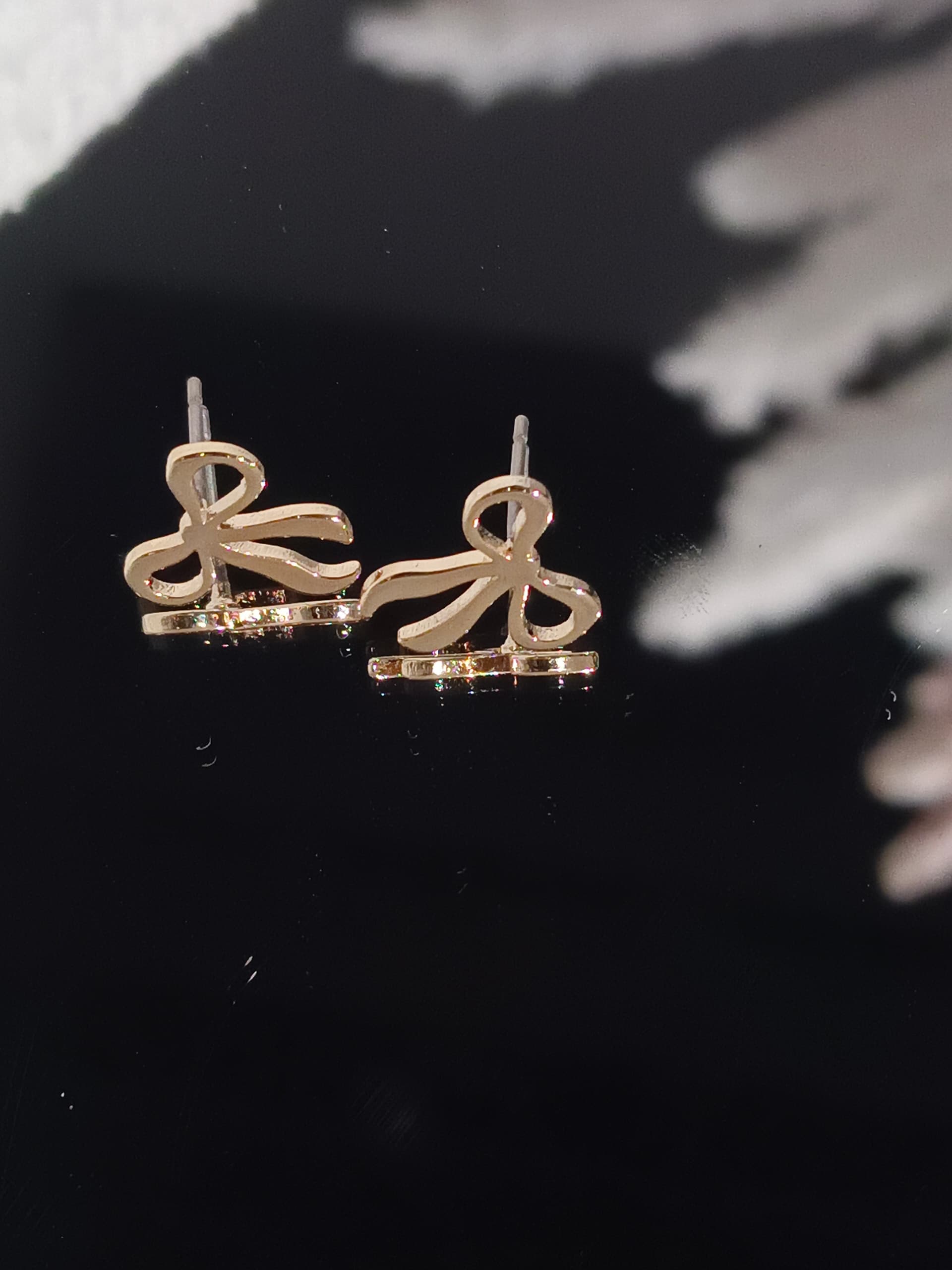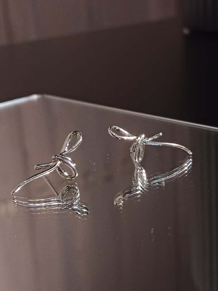Irregular Plain Ribbon Stud Earrings (Silver)