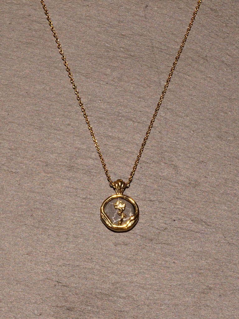 18K Gold/White Gold Platted Vintage Emblem Necklace