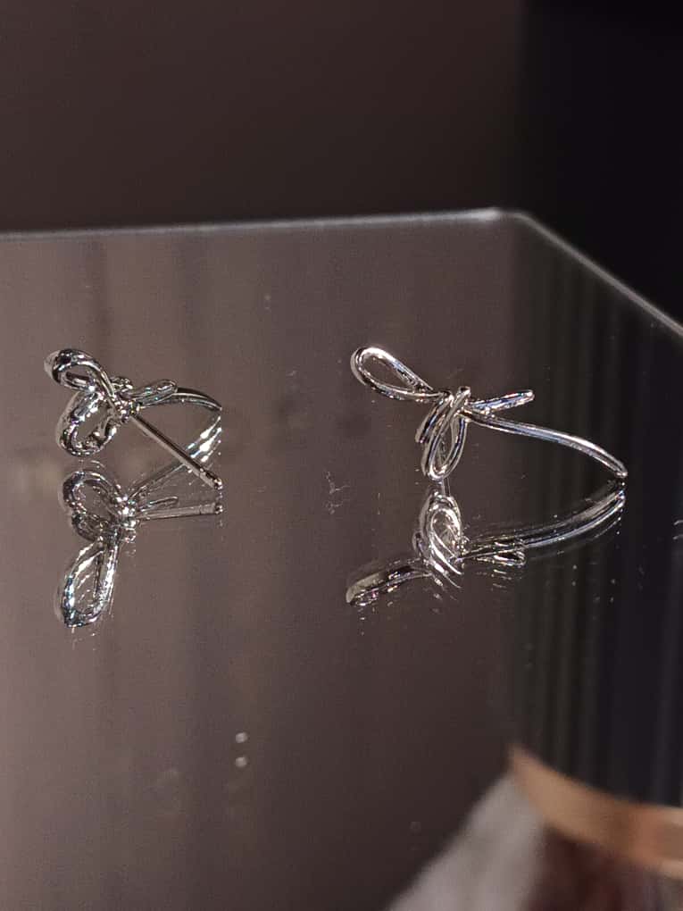 Irregular Plain Ribbon Stud Earrings (Silver)